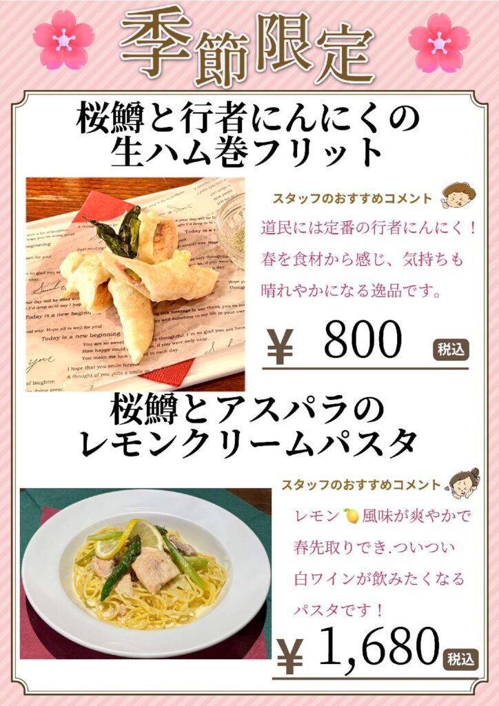当店では、期間限定メニュー「桜鱒を使ったはるの新メニュー」の販売を開始しております。
